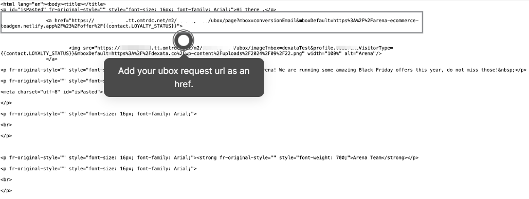 • How it works: Instead of embedding a static image URL in the email, you instead embed a UBOX request URL. Then, Adobe Target decides, based on audience rules (e.g., Gold, Silver, Platinum customers), exactly which personalised image to display.