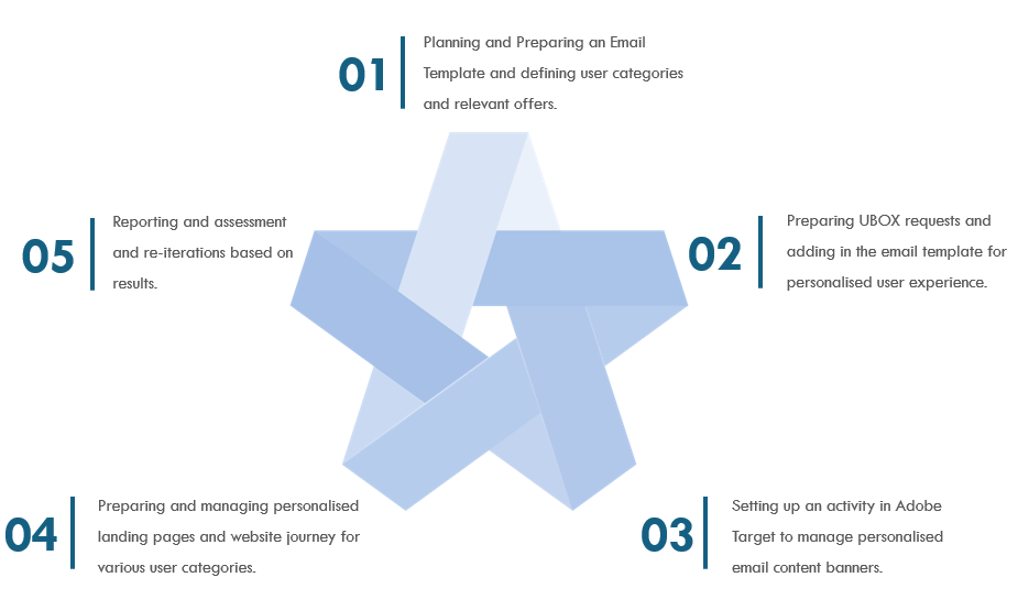 For configuring an email personalisation usecase, we would require multiple configuration phases as mentioned below: